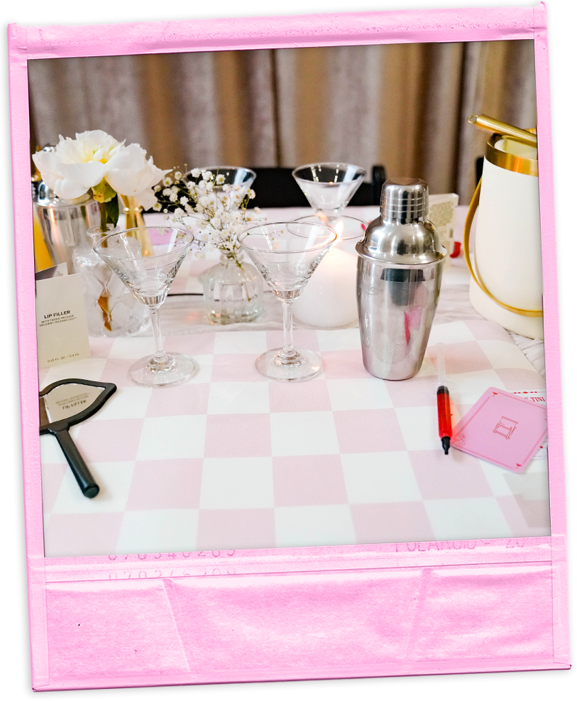 Whether it’s a wedding, corporate soirée, or girls’ night in, we believe every celebration deserves cocktails with personality. From grand events to intimate martini classes, we bring the full experience: real glassware, custom menus, pink jumpsuits, and a bar setup that looks as good as it tastes.